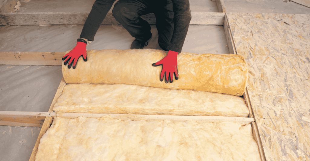 Magas minőségű, 25 cm vastag, két rétegben leterített üveggyapot szigetelés.